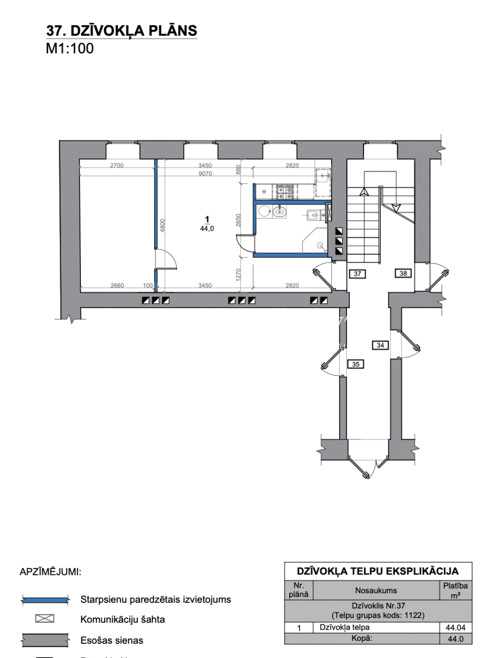 Предлагается к продаже двухкомнатная квартира площадью 44 м² на 1-м этаже реконструированного дома по адресу улица Катоļu 9, прямо напротив парка «Мира дарзс», всего в 5 минутах езды от центра города.