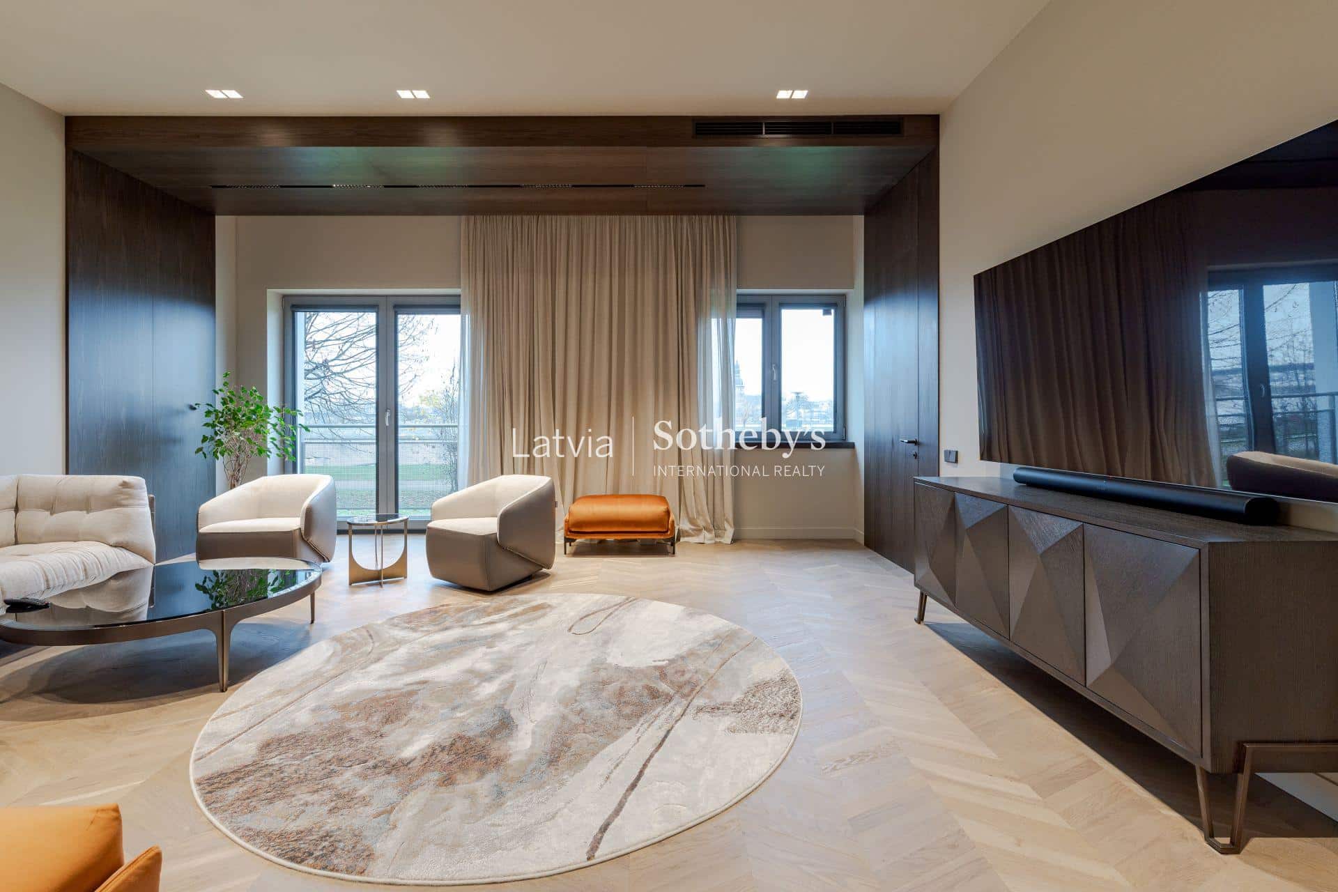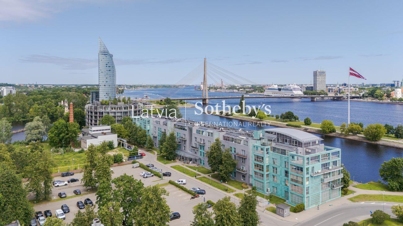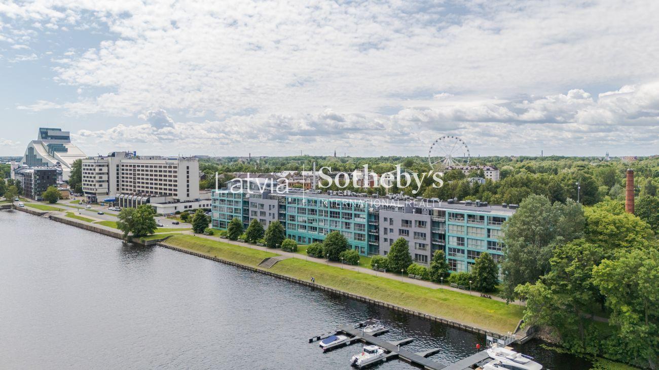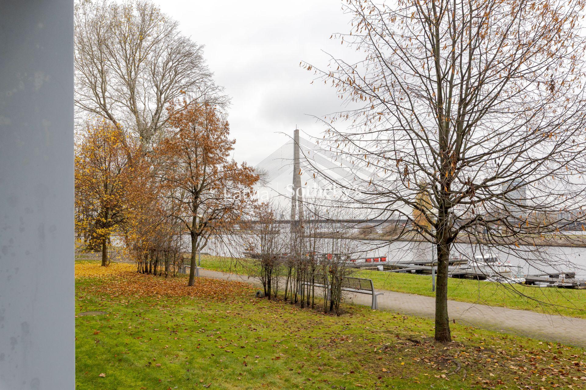 Из окон открывается широкий вид на набережную Даугавы, где спокойствие и зелень соединяются с динамикой центра Риги.