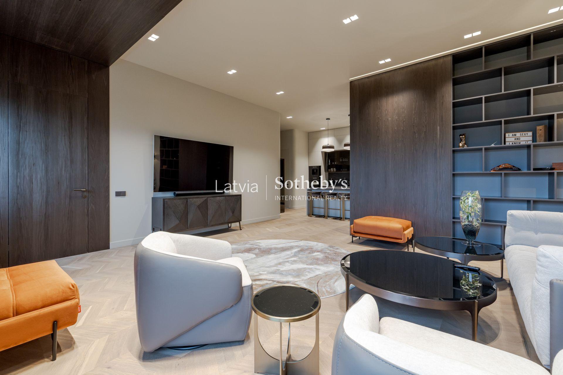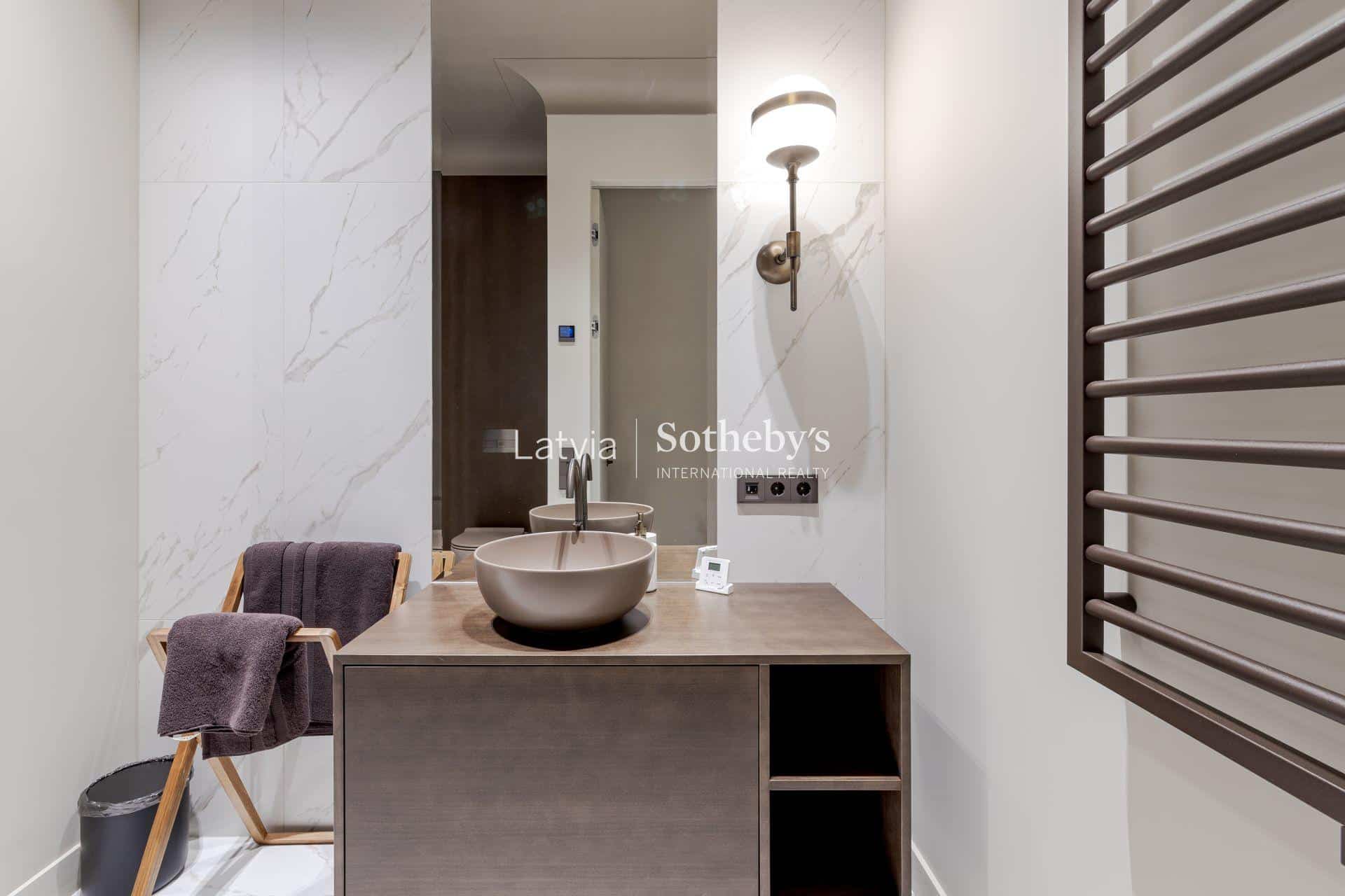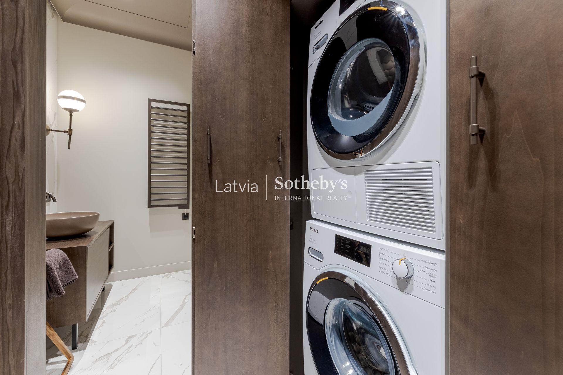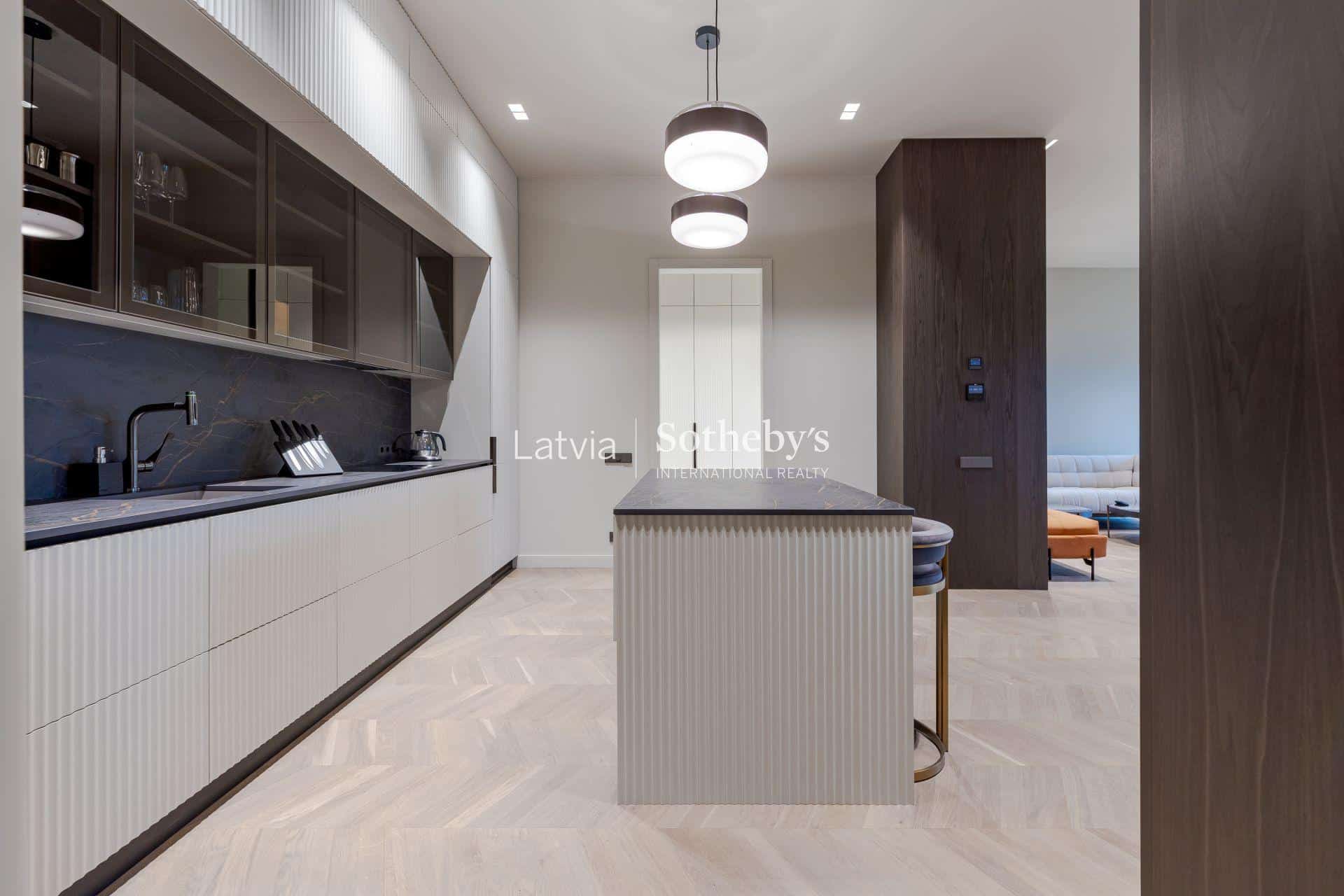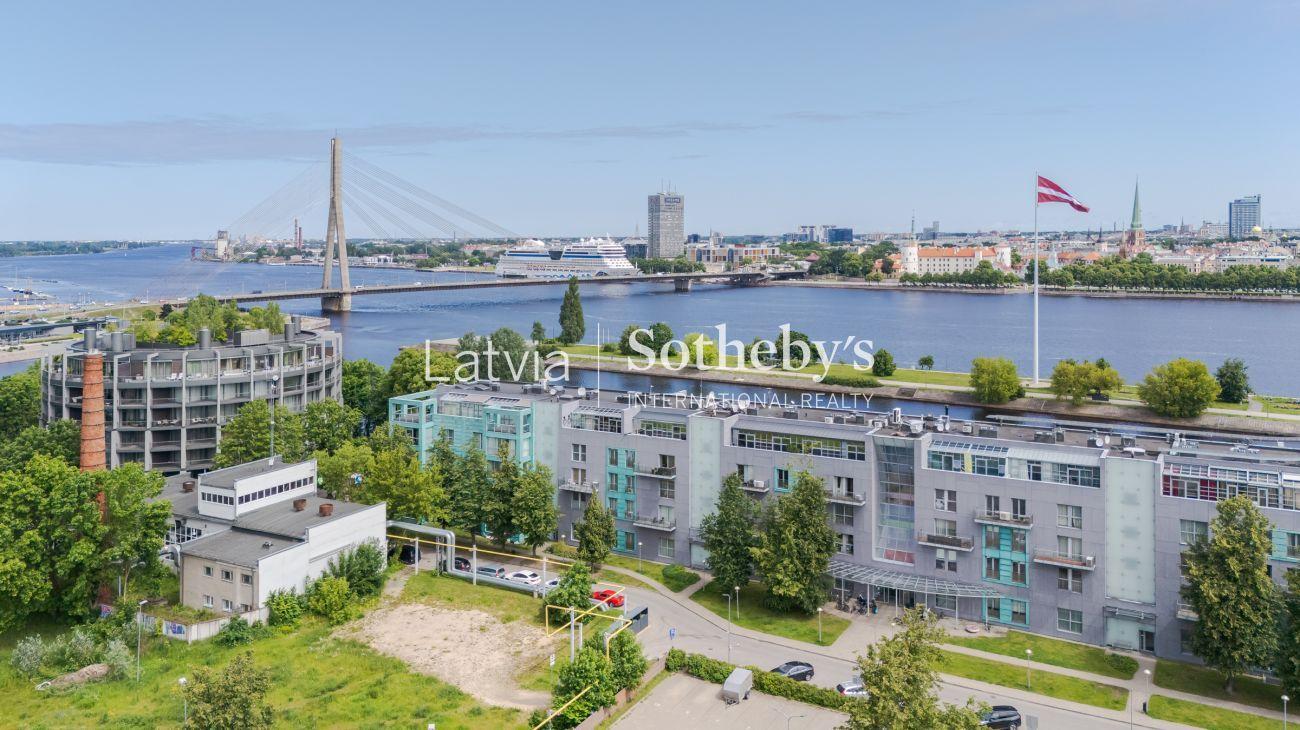Из больших окон открывается вдохновляющий вид на Даугаву, Вантовый мост и шпили Старой Риги, позволяя наслаждаться прекрасной панорамой города каждый день.