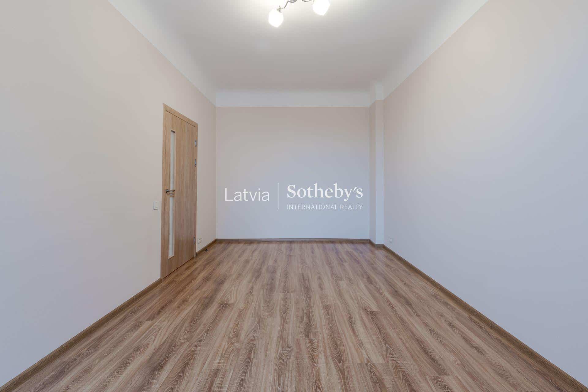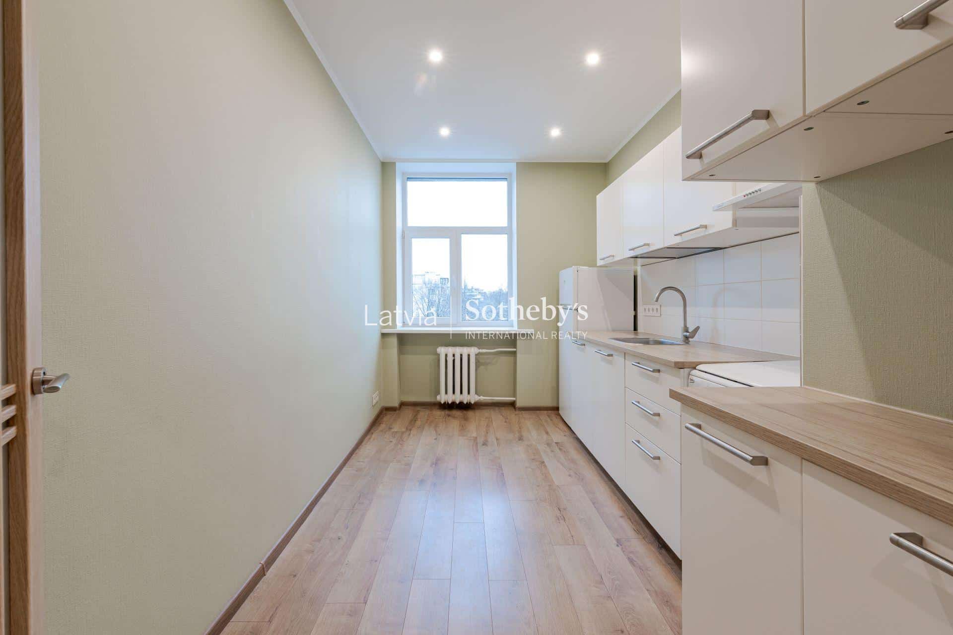 В квартире отдельная кухня, гостиная площадью 24.2 м² и спальня 18.4 м². Окна выходят на зелёные улицы Томсона и Нитаурес.