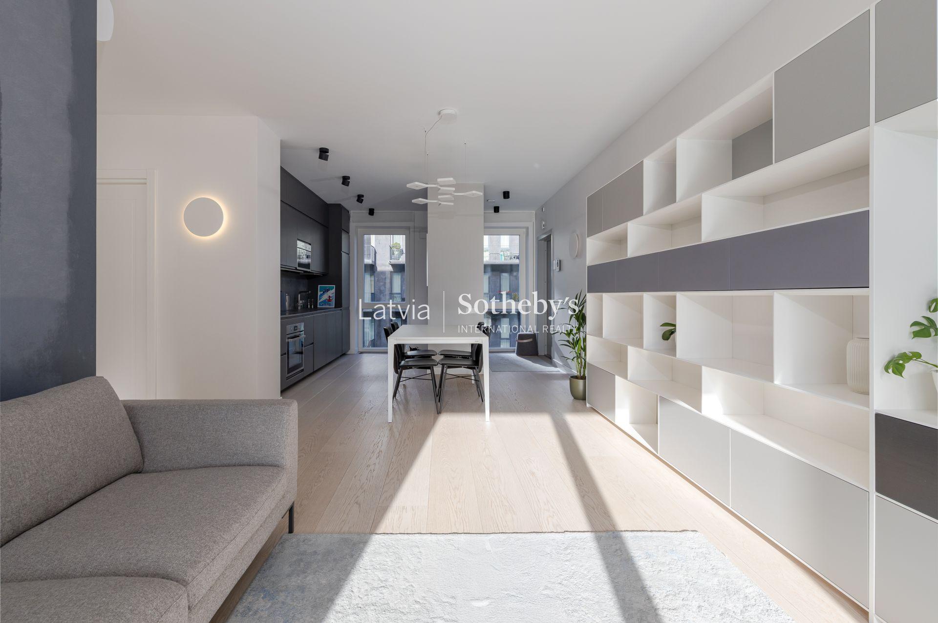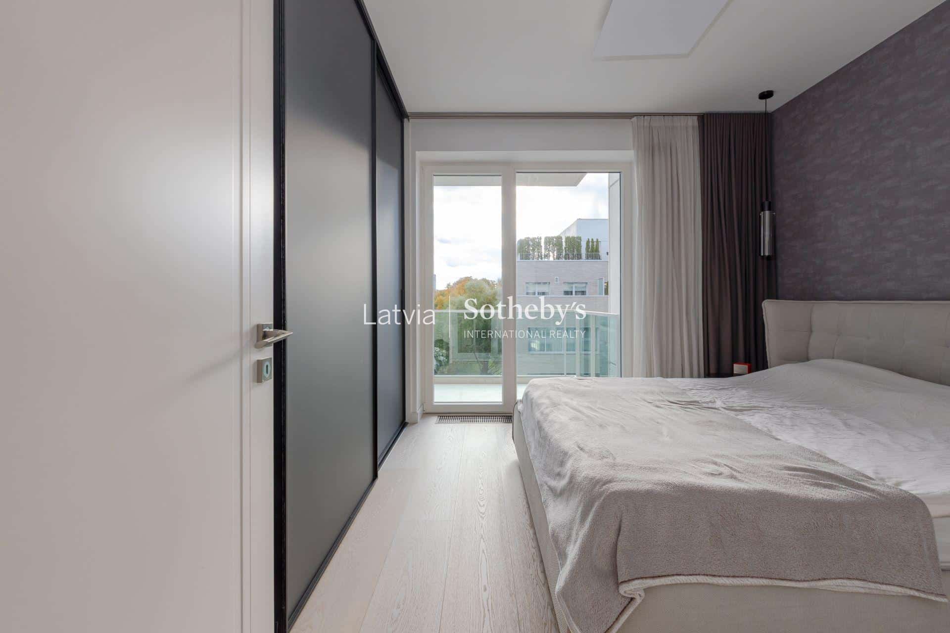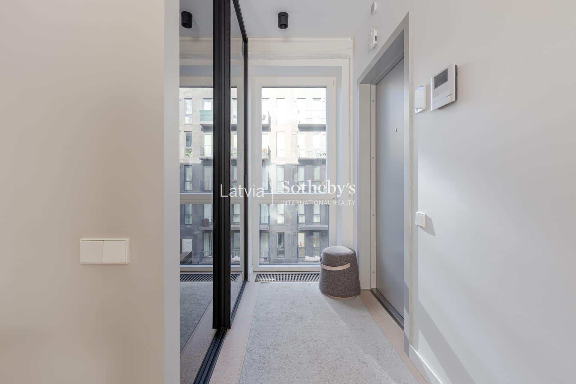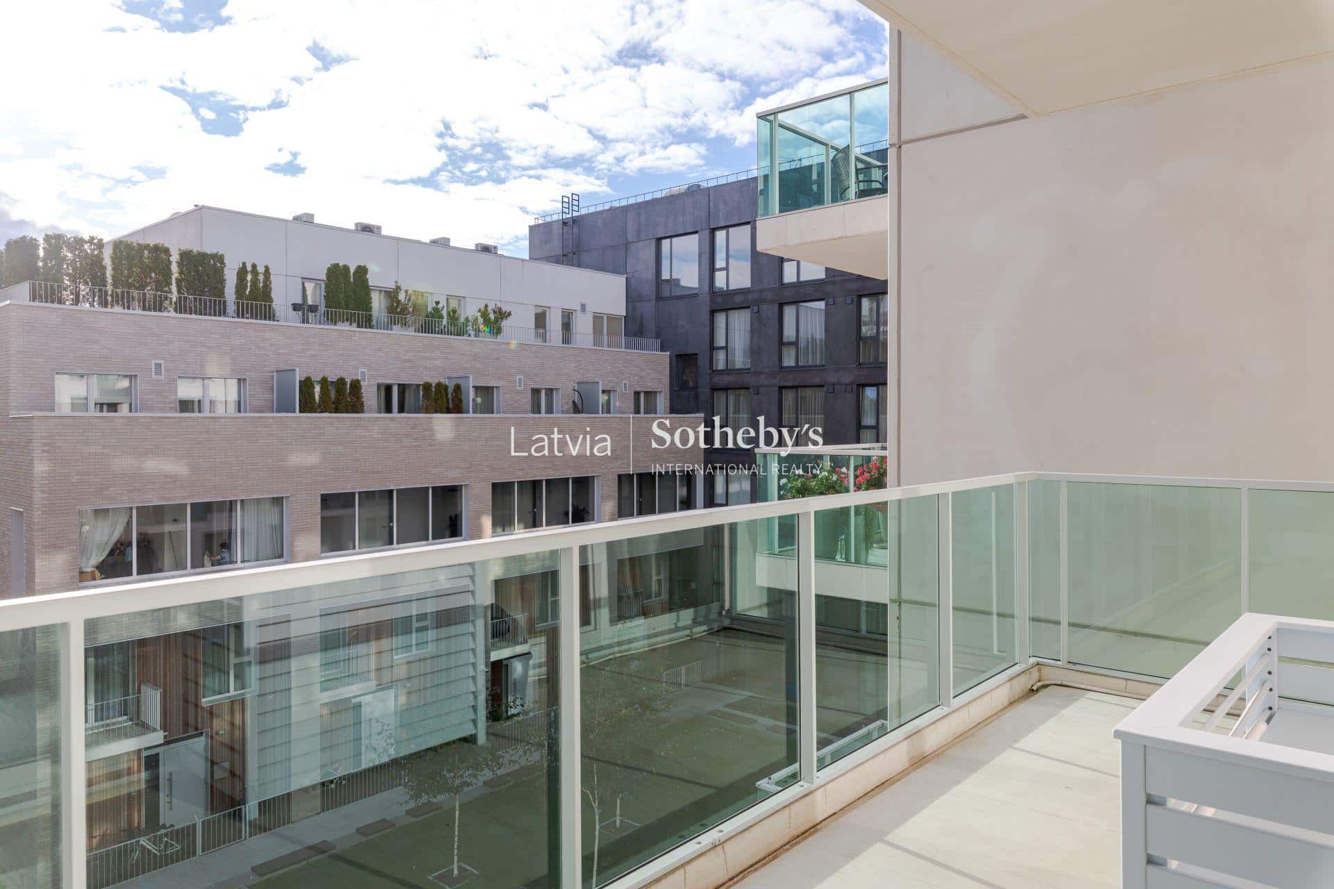 • Продуманная планировка – гостиная с кухней, две спальни и просторный балкон с видом на парк Виестурдарзс.