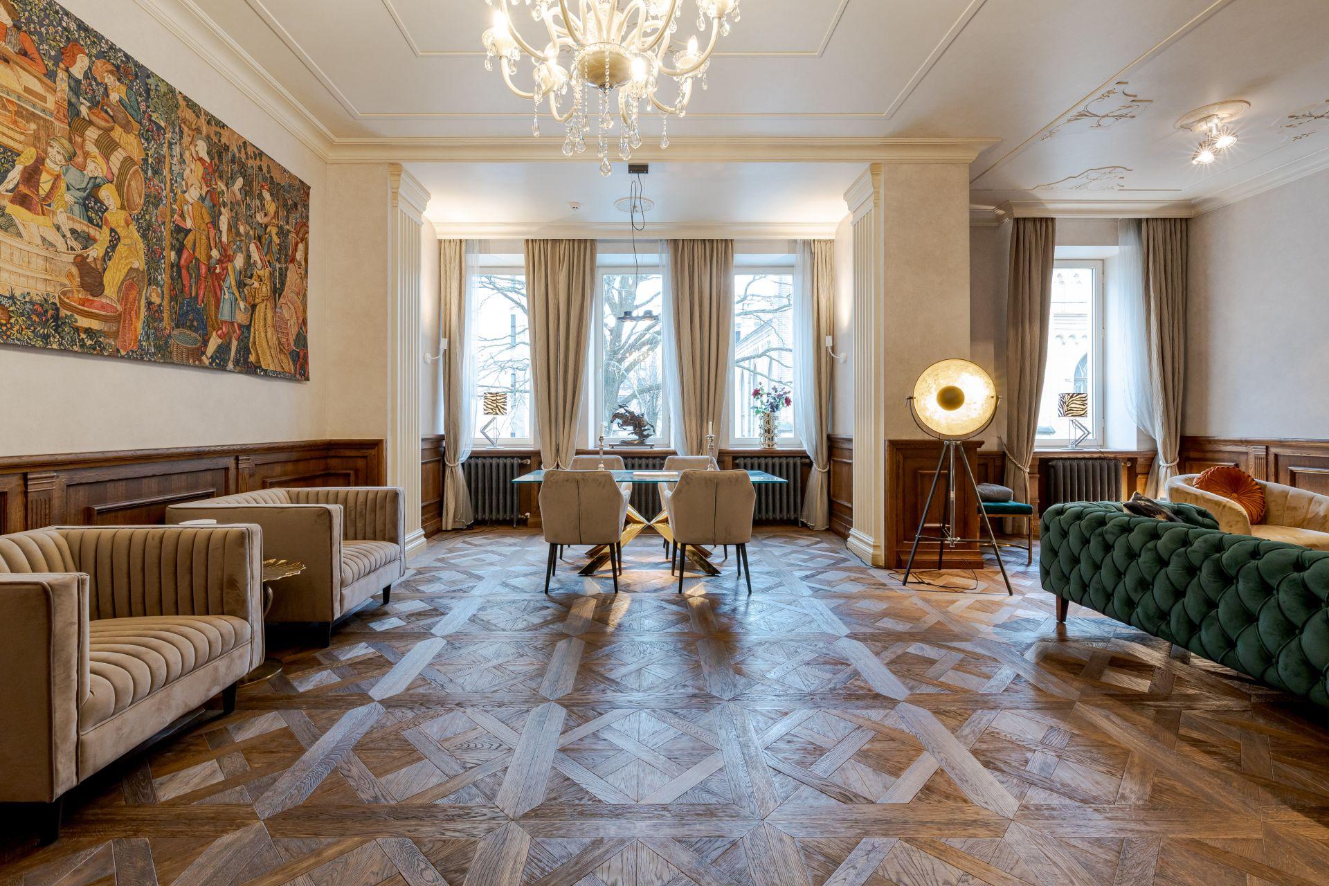 В ходе реконструкции были восстановлены исторические элементы фасада и интерьера, обустроены новые входы, установлены лифты и отреставрированы роскошные лестничные клетки. Для удобства жителей в доме оборудованы бассейн, сауна и тренажёрный зал, что обеспечивает комфорт и приватность проживания клубного типа.