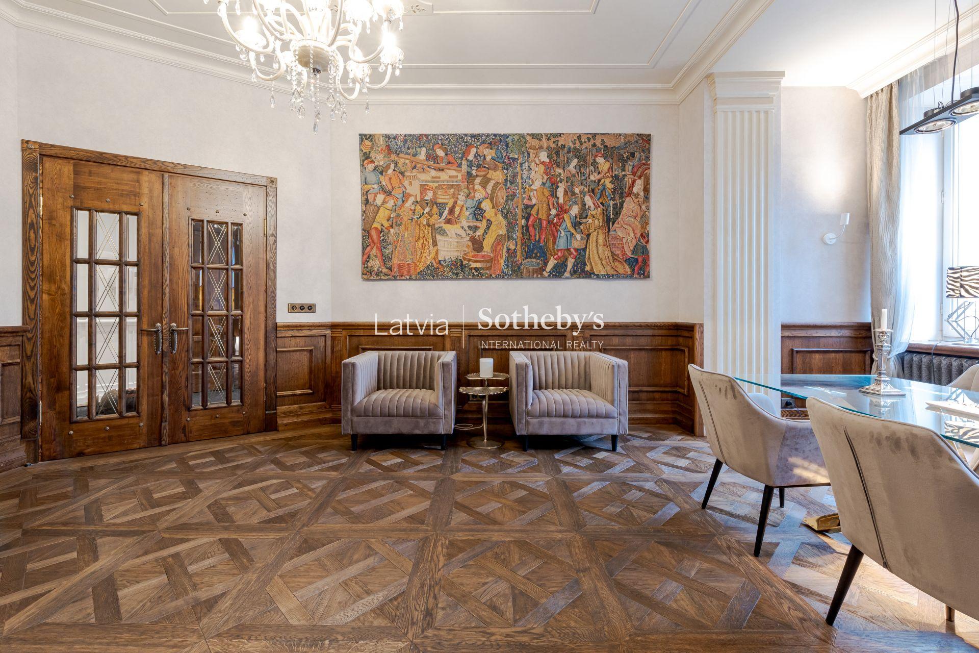В продаже — просторная и элегантная квартира, расположенная на втором этаже дома. В квартире функционально размещены гостиная с камином, создающая тёплую и романтичную атмосферу, отдельная кухня, две изолированные спальни, кабинет (который можно переоборудовать в дополнительную спальню), две ванные комнаты и гостевой санузел.