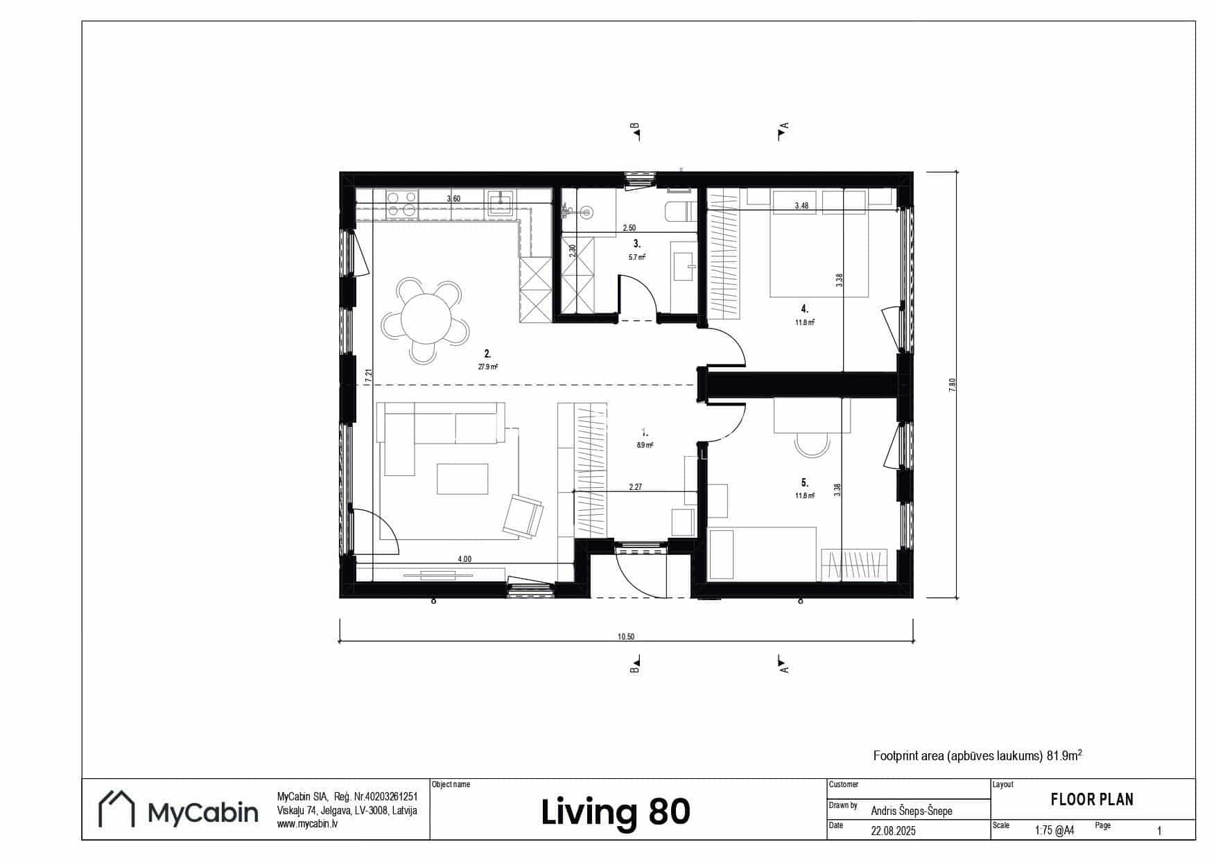 Подробная спецификация дома: https://www.mycabin.lv/majas-ar-zemi