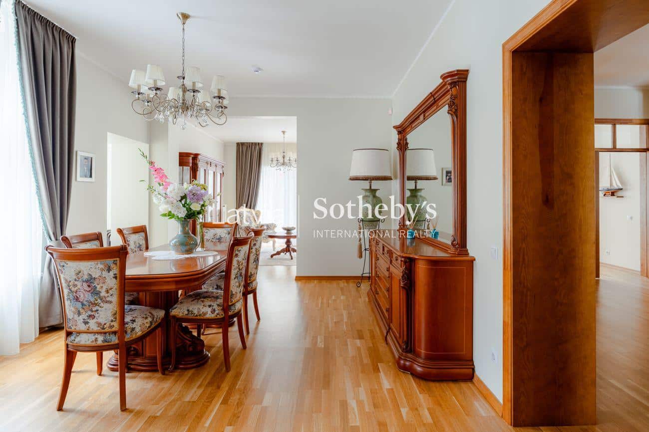 Этот дом говорит об изысканности и вкусе — каждый элемент пространства был тщательно подобран, каждый акцент интерьера создан с любовью к деталям. Дизайнерский интерьер сочетает в себе историческую элегантность и современные удобства, создавая исключительную атмосферу и гармонию.