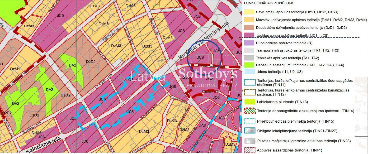 Согласно территориальному планированию, территория центральной смешанной застройки (JC6) является функциональной зоной в пределах зон охраны градостроительных памятников и охраняемой застройки и предназначена для широкого спектра смешанных функций, а также для использования и развития в качестве городского или районного центра. В данных зонах городская среда в первую очередь обеспечивает качество, необходимое для жилых и общественных функций. Промышленные функции ограничены.